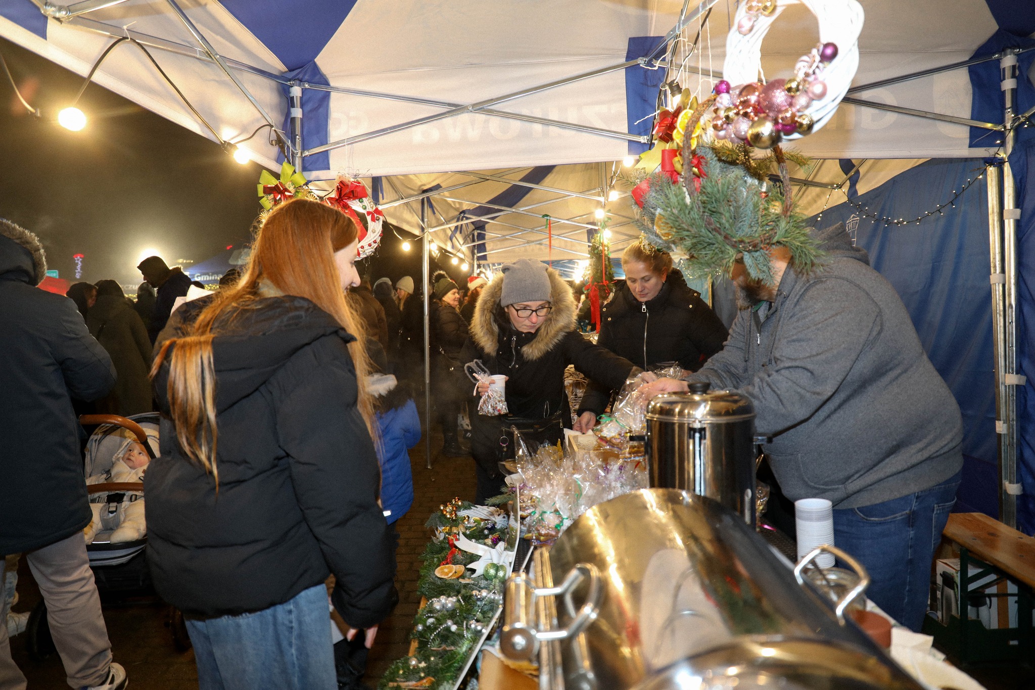 Na jarmarkowych stoiskach można było zakupić świąteczne produkty i rękodzieło przygotowane przez Koła Gospodyń Wiejskich oraz lokalnych wystawców, co stanowiło doskonałą okazję do wsparcia lokalnych inicjatyw i zaopatrzenia się w bożonarodzeniowe ozdoby.